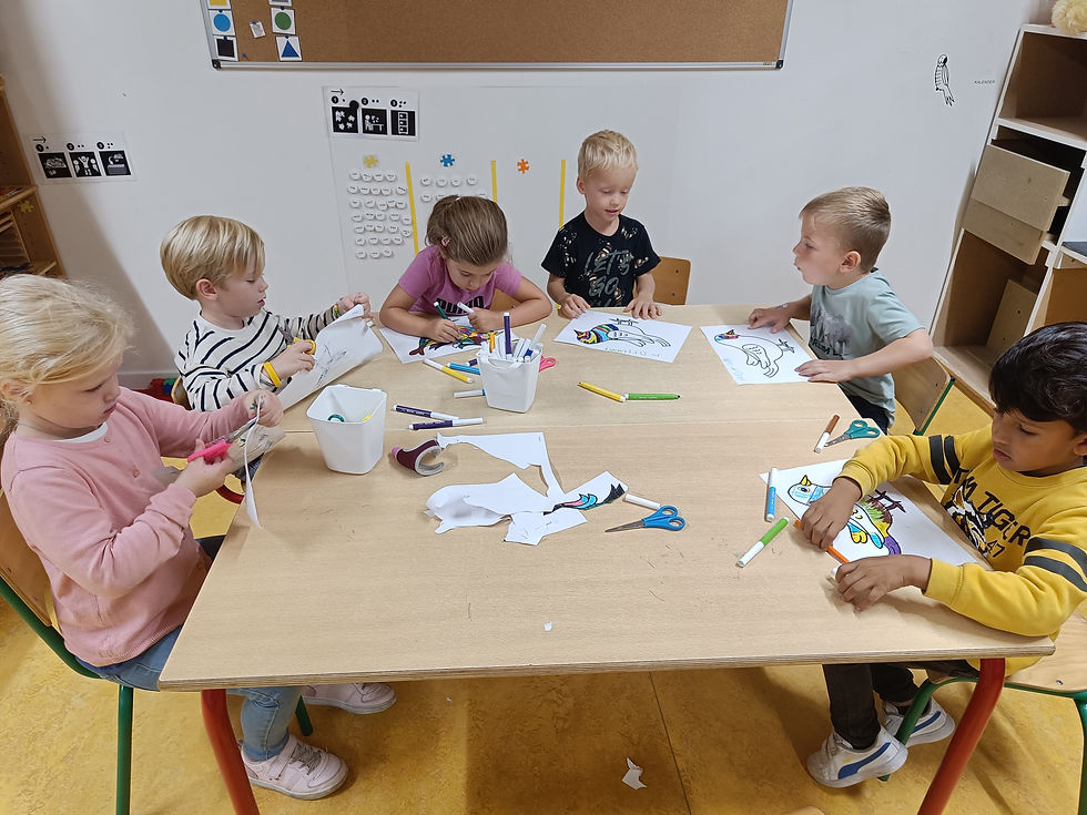 -In het krullenbol (schrijfdans) momentje maken we mooie nestjes voor onze gekleurde vogels.
