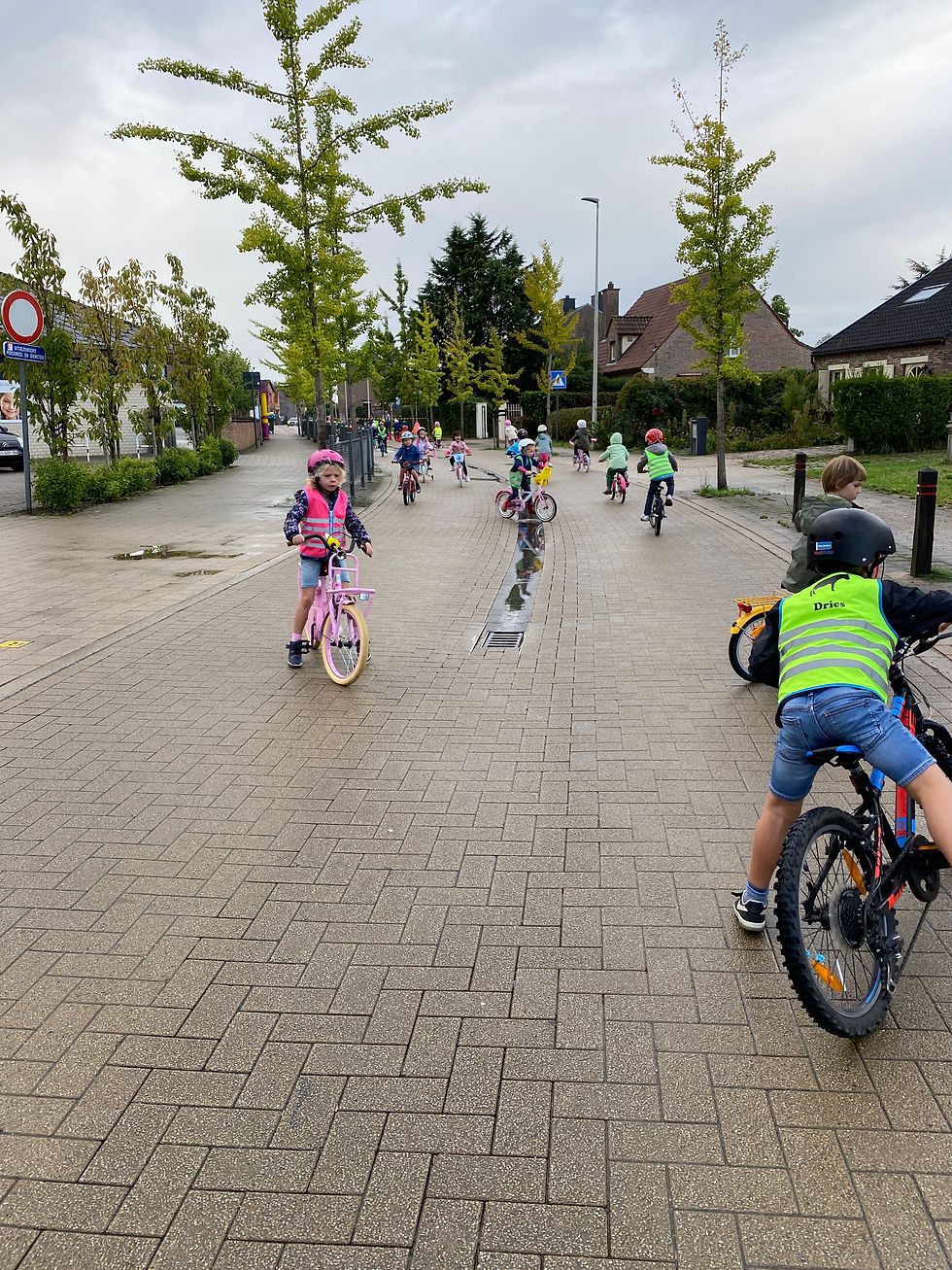 Op de strapdag gingen we krijten en fietsen op de straat.