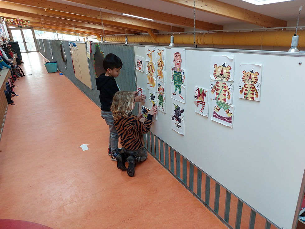 -circustent met elektriciteitstape, kinderen tekenen de acrobaten, schrijfpatronen, ….