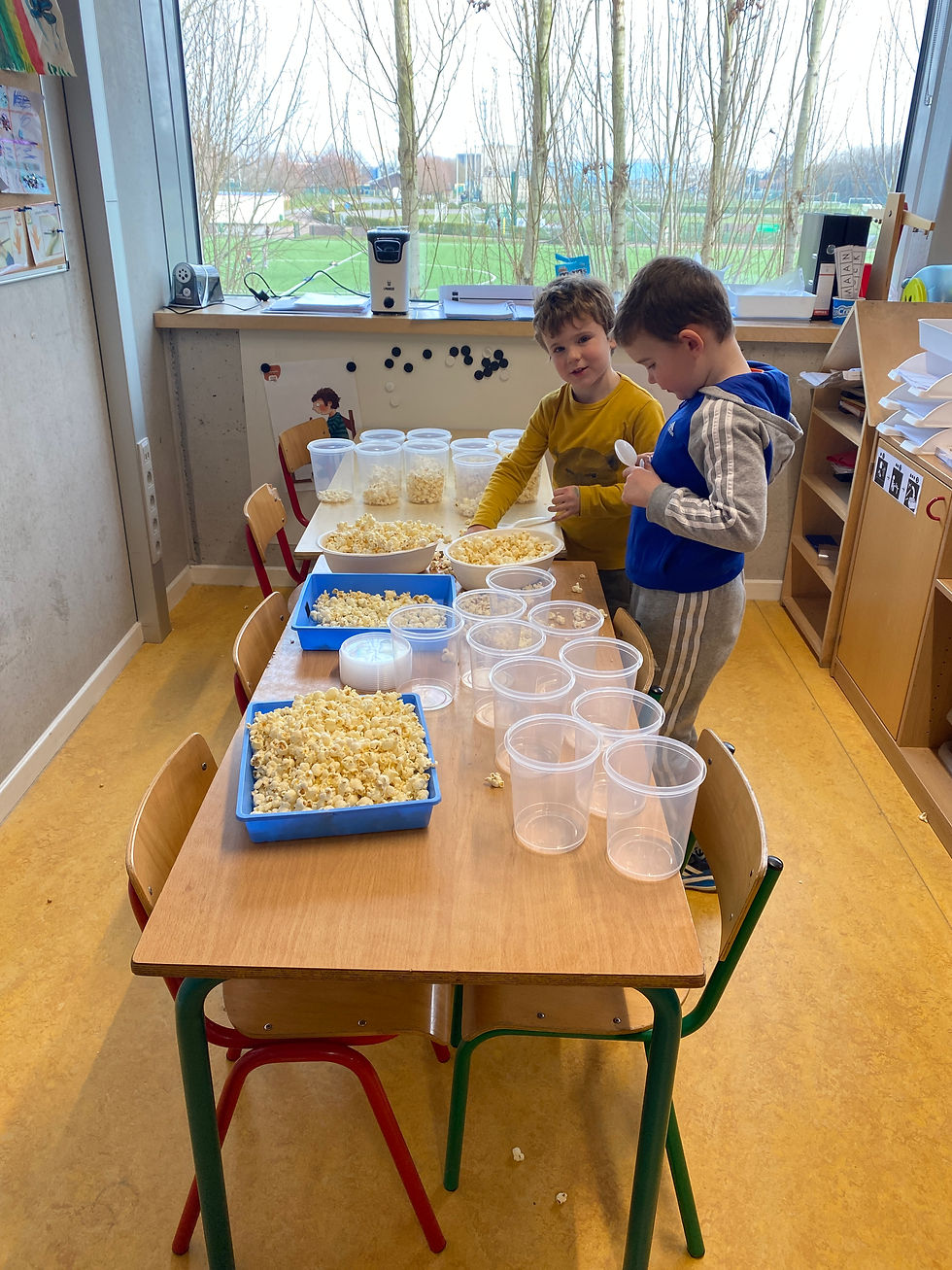 -Patroon jonglerende clown, zowel met ballen als met vormen -Telspel circusdieren (paperclips) -Popcornspel: meer/minder, vullen en vergelijken