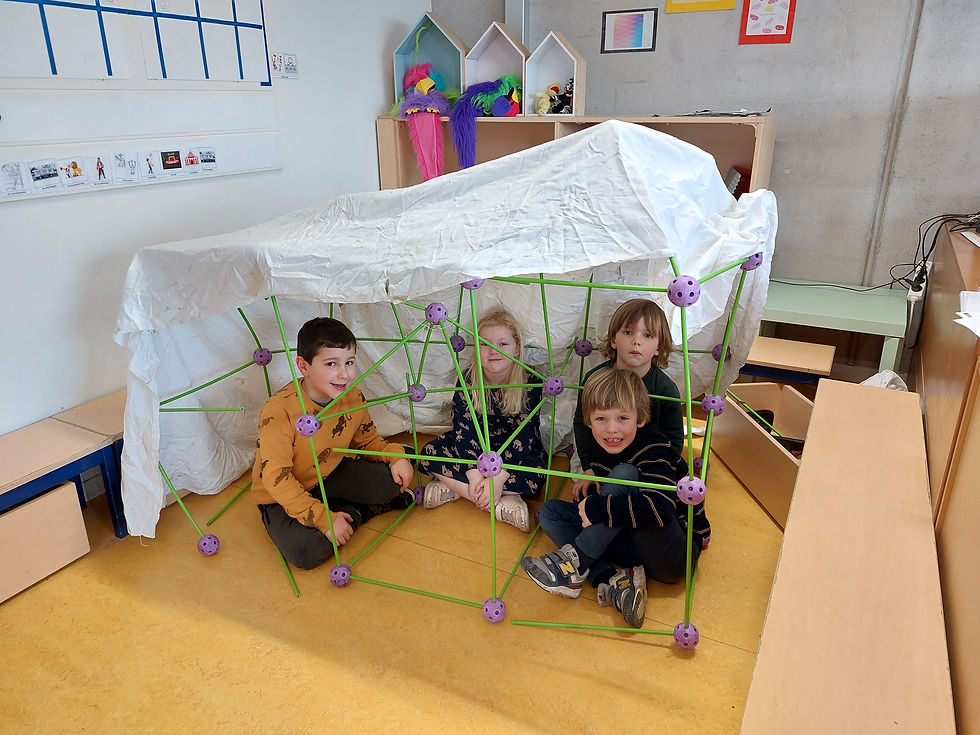 -Bouwen van een circustent met blokken, duplo, met bollen en stokken en doeken