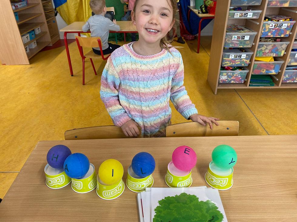 - Woorden maken met jongleerballen (zoeken van de juiste letters)