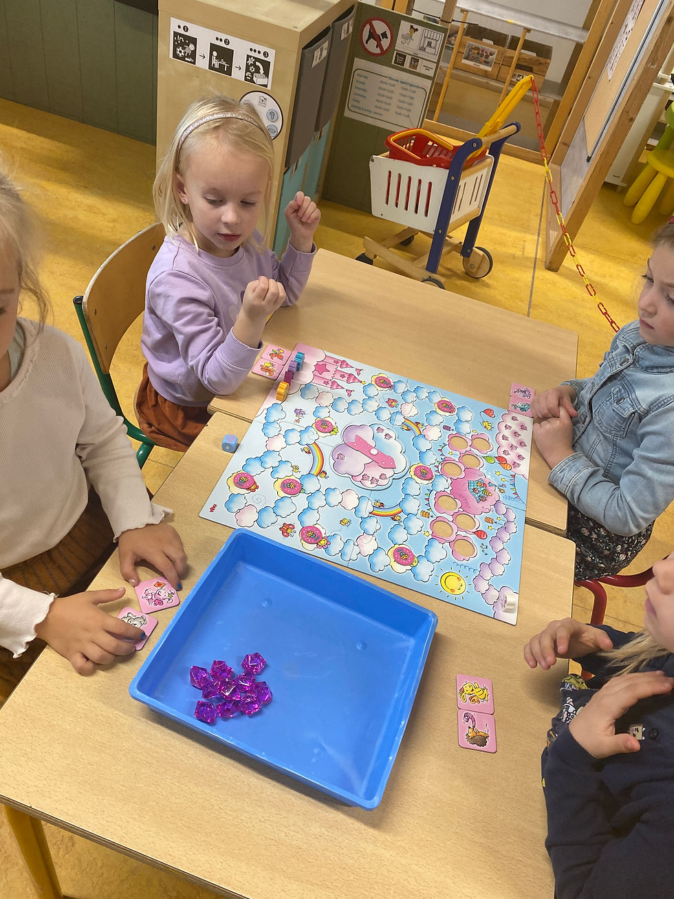 deze korte week mochten onze kapoenen zelf een gezelschapsspel meebrengen! Elke kleuter kon zijn of haar spel uitleggen en daarna gingen we samen spelen. Alle tafeltjes stonden klaar.